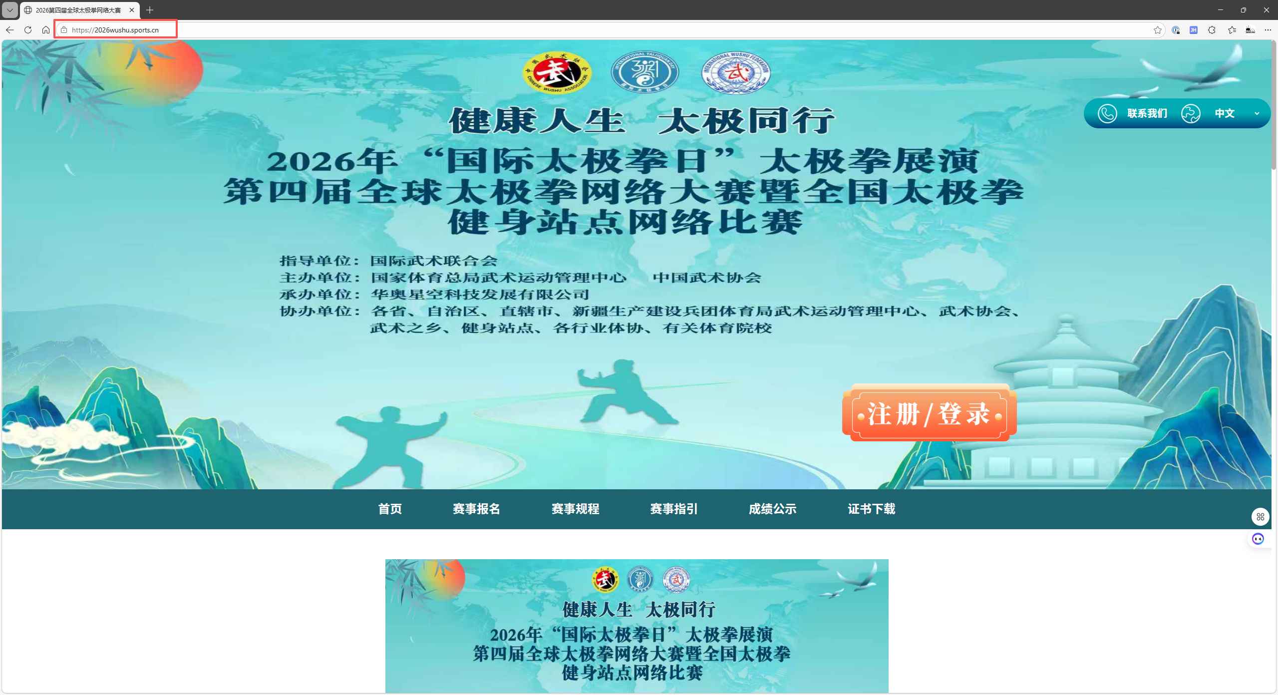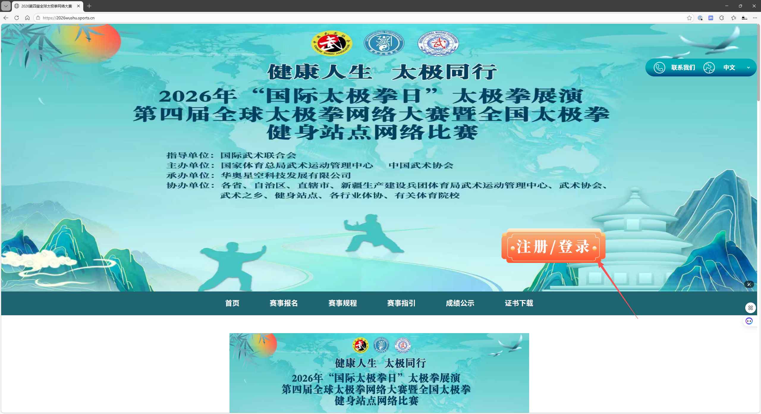 1.打开首页:https://2026wushu.sports.cn/