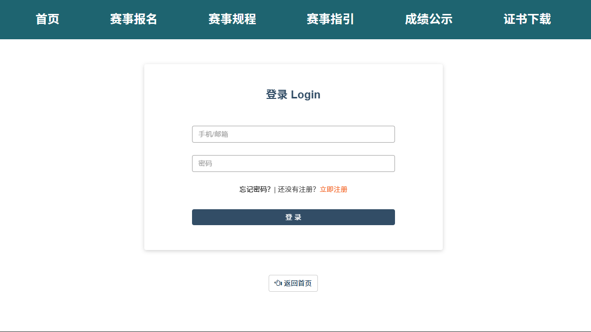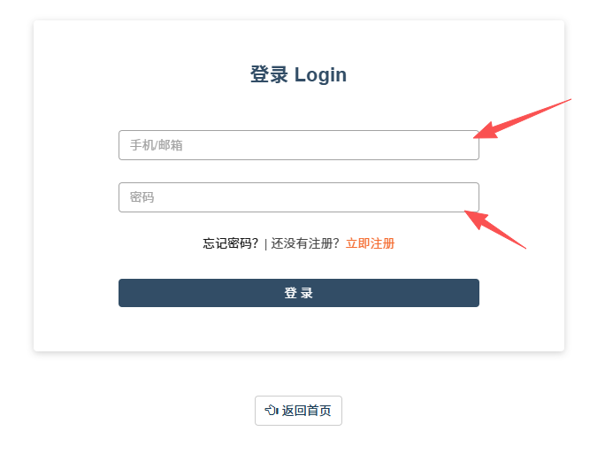 注册完成后,即可进行登陆,输入“用户名”(即手机号或邮箱)和“密码”,然后点击“登录”按钮进行登录。