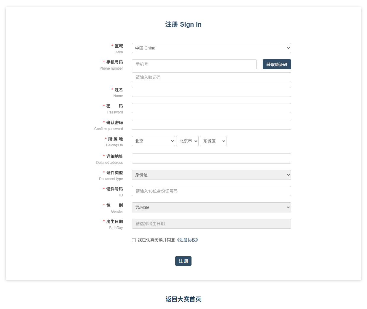 阅读参赛免责书,并勾选“同意自愿参赛免责书”选项。