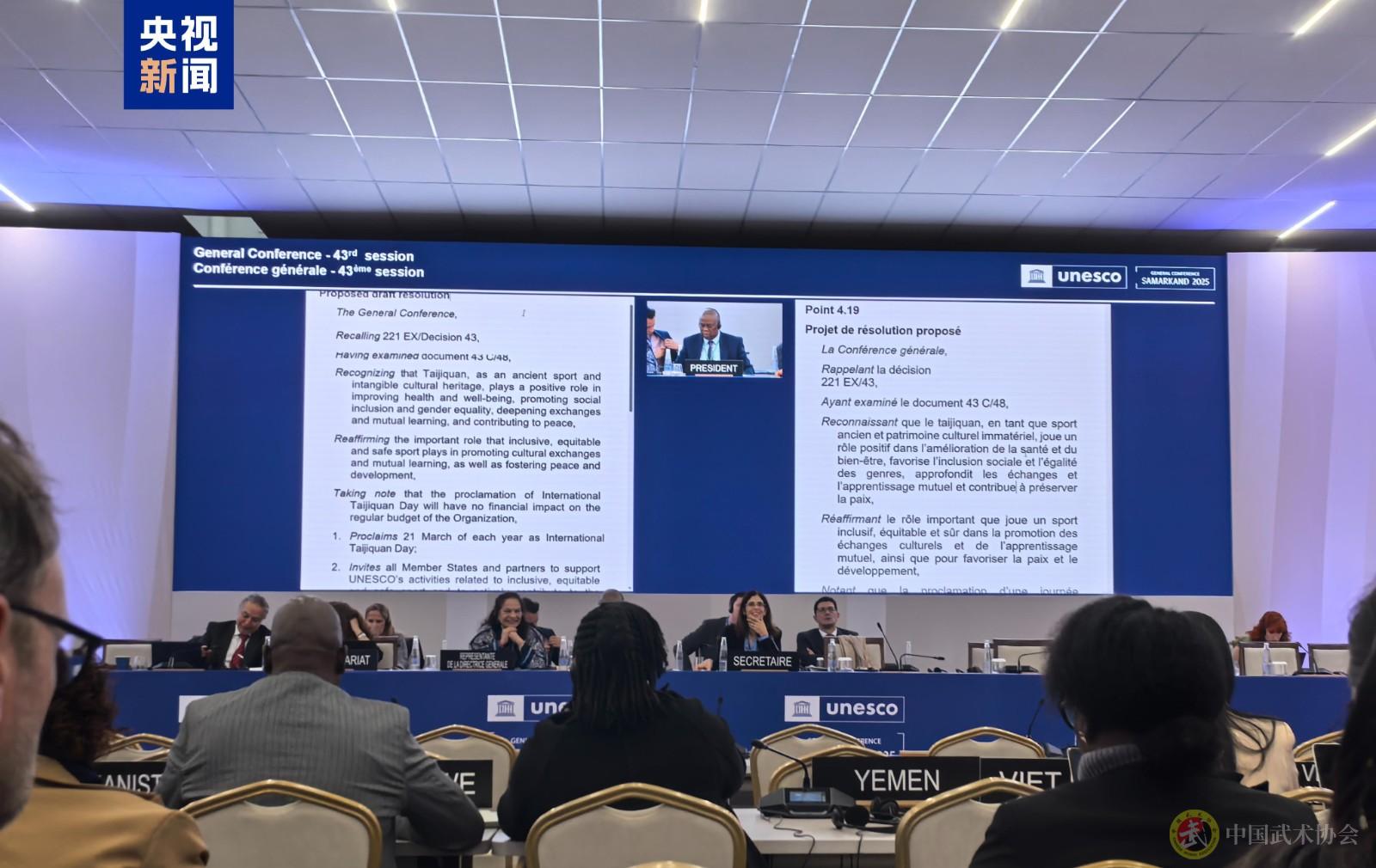 大会现场 当地时间11月5日下午,联合国教科文组织第43届大会通过决议,宣布每