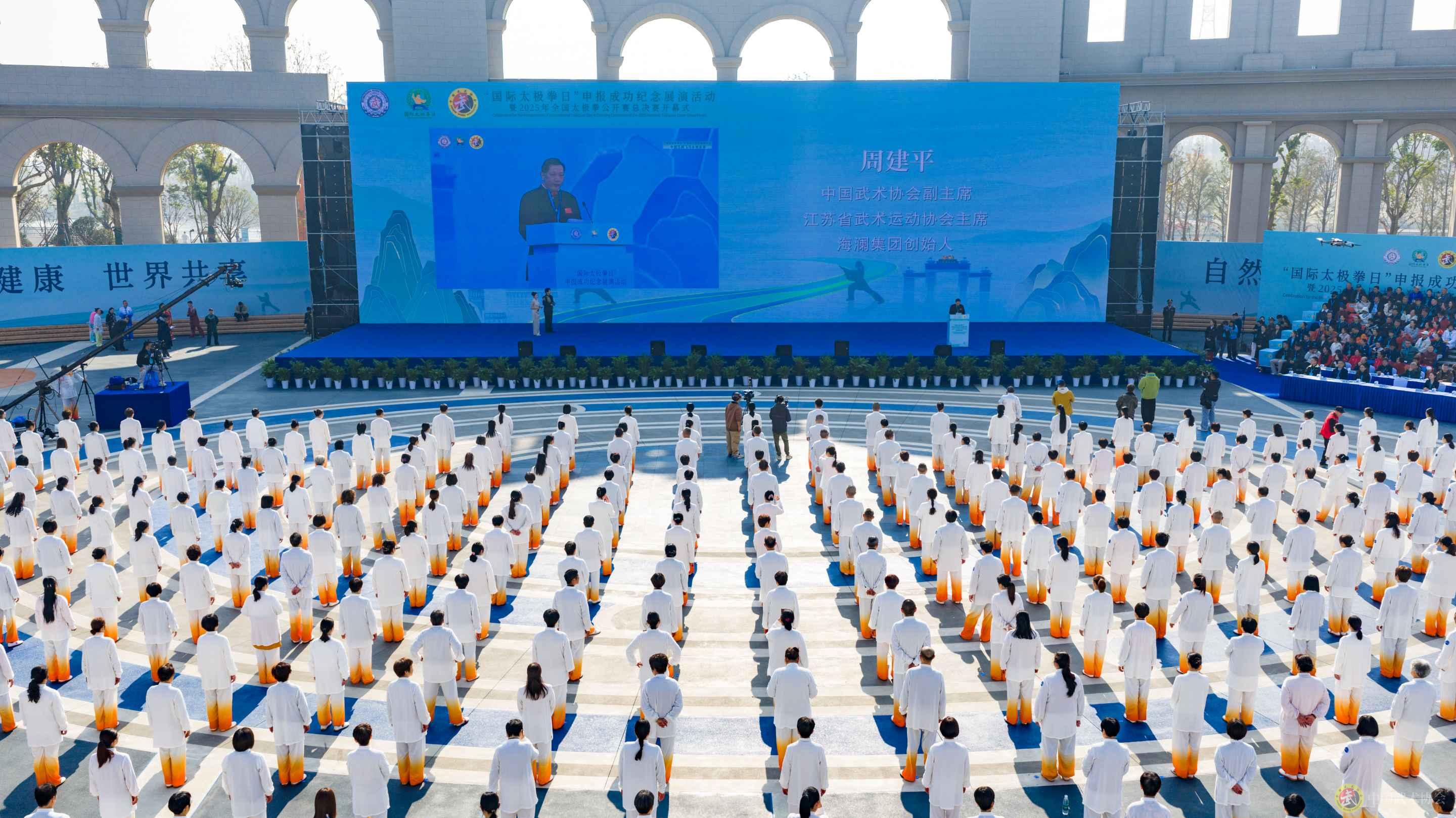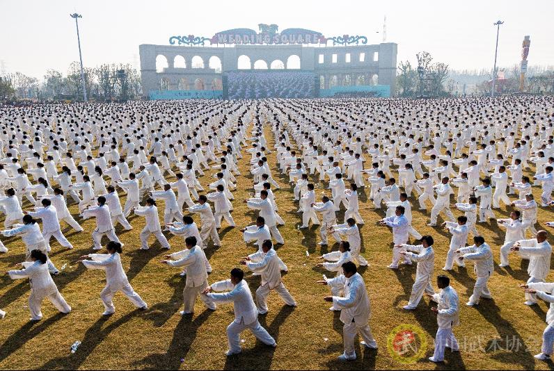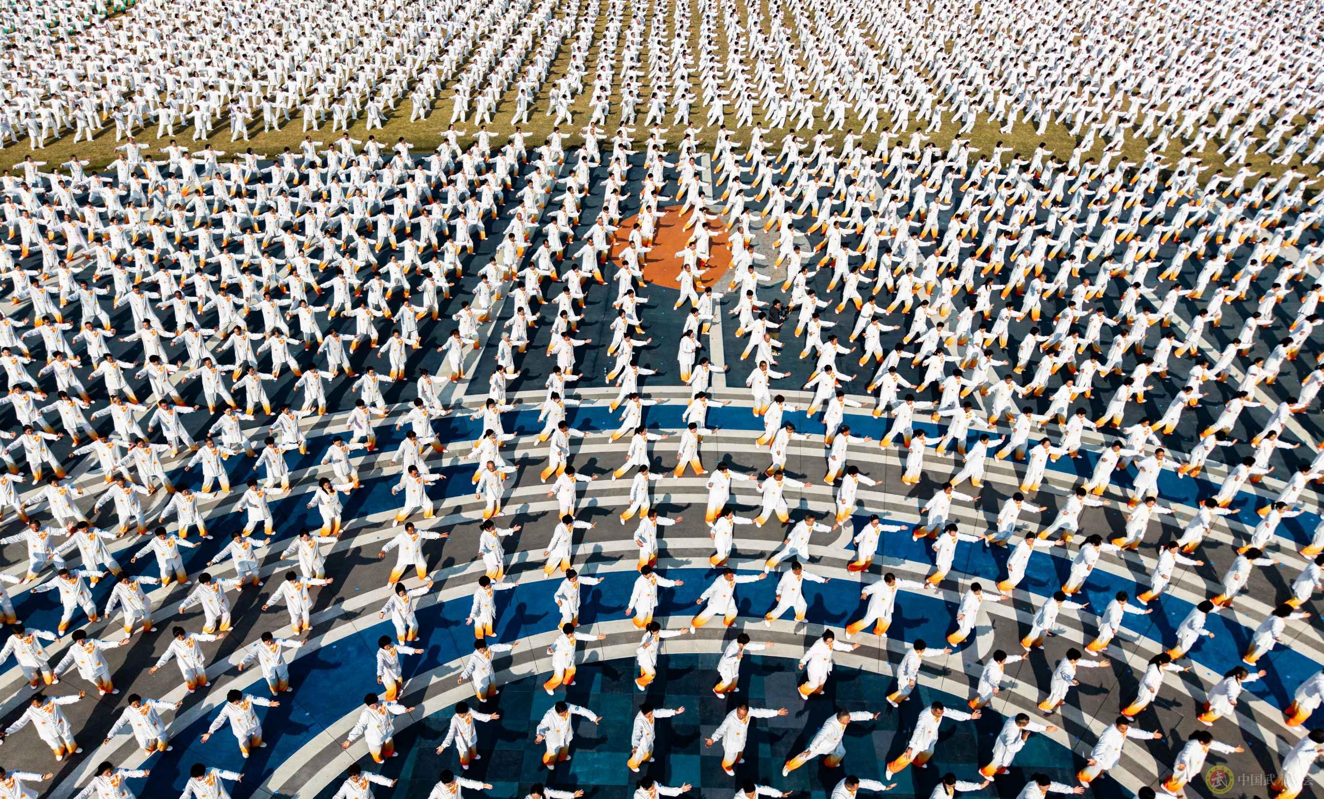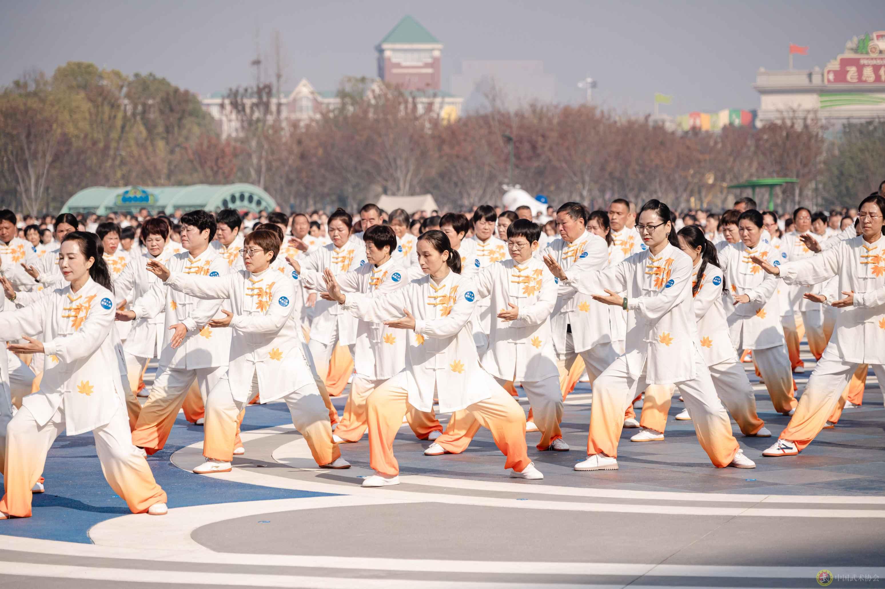 五地同步开展纪念展演活动,23000余人共同演练太极拳,以整齐划一的动作庆祝“国际太极拳日”申报成功这一重要时刻。